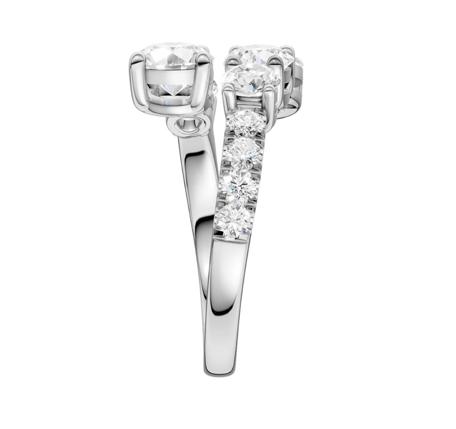 Designed for elegance and brilliance, this bypass ring features 3 CTW of round lab grown diamonds, creating a stunning and modern silhouette. The bypass design gracefully wraps around the finger, symbolizing unity and movement, making it a meaningful and stylish choice. Crafted in 14 KT white gold, the ring showcases meticulously set diamonds that enhance its radiance and sophistication. Whether worn as a statement piece or to mark a special occasion, this exquisite timeless beauty and elegance.