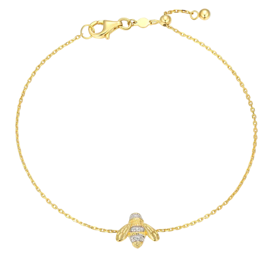 This delicate chain bracelet features a charming bee with sparkling diamond accents, a symbol of hard work and prosperity, perfect for stacking or wearing solo.