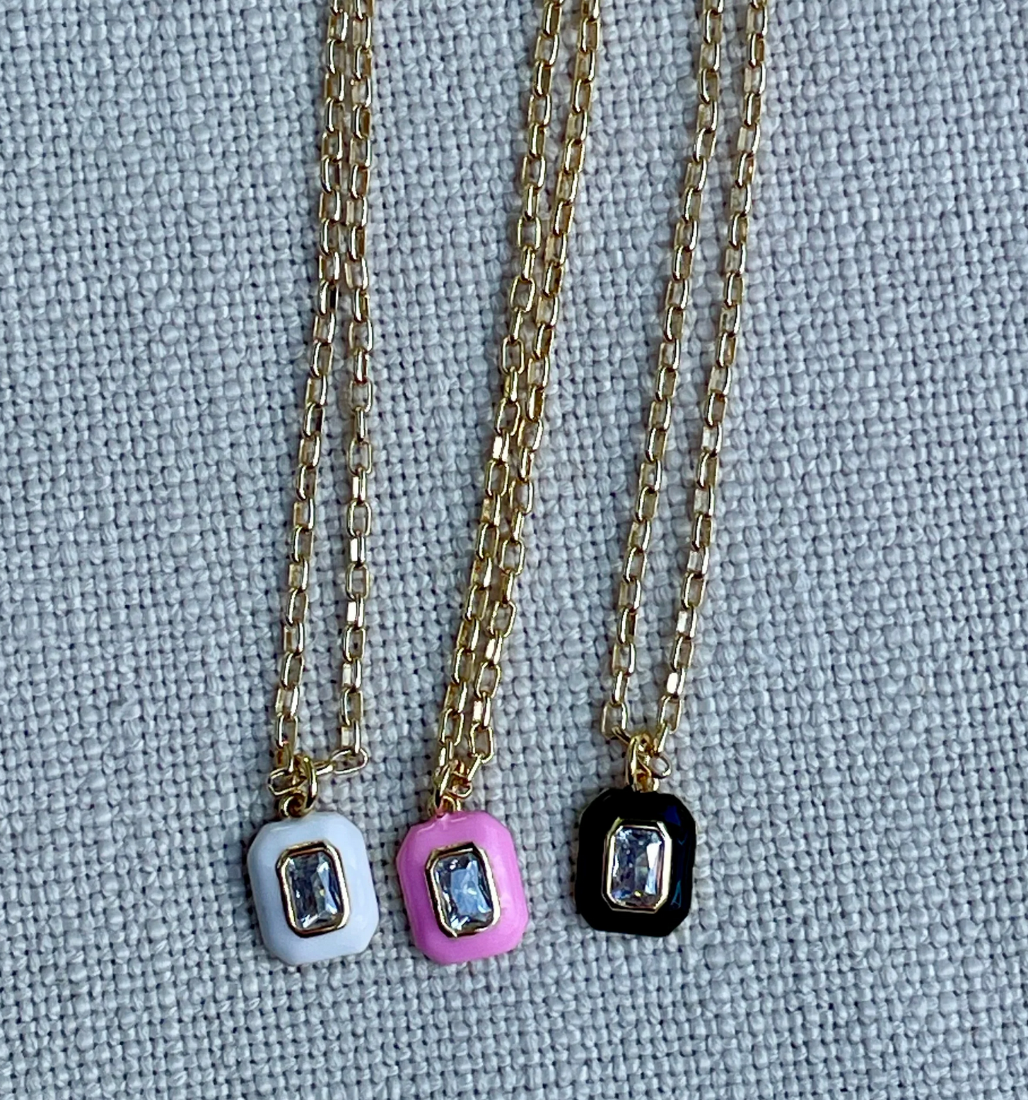 OMG ~ Enamel Gem Necklace in Pink, Black or White